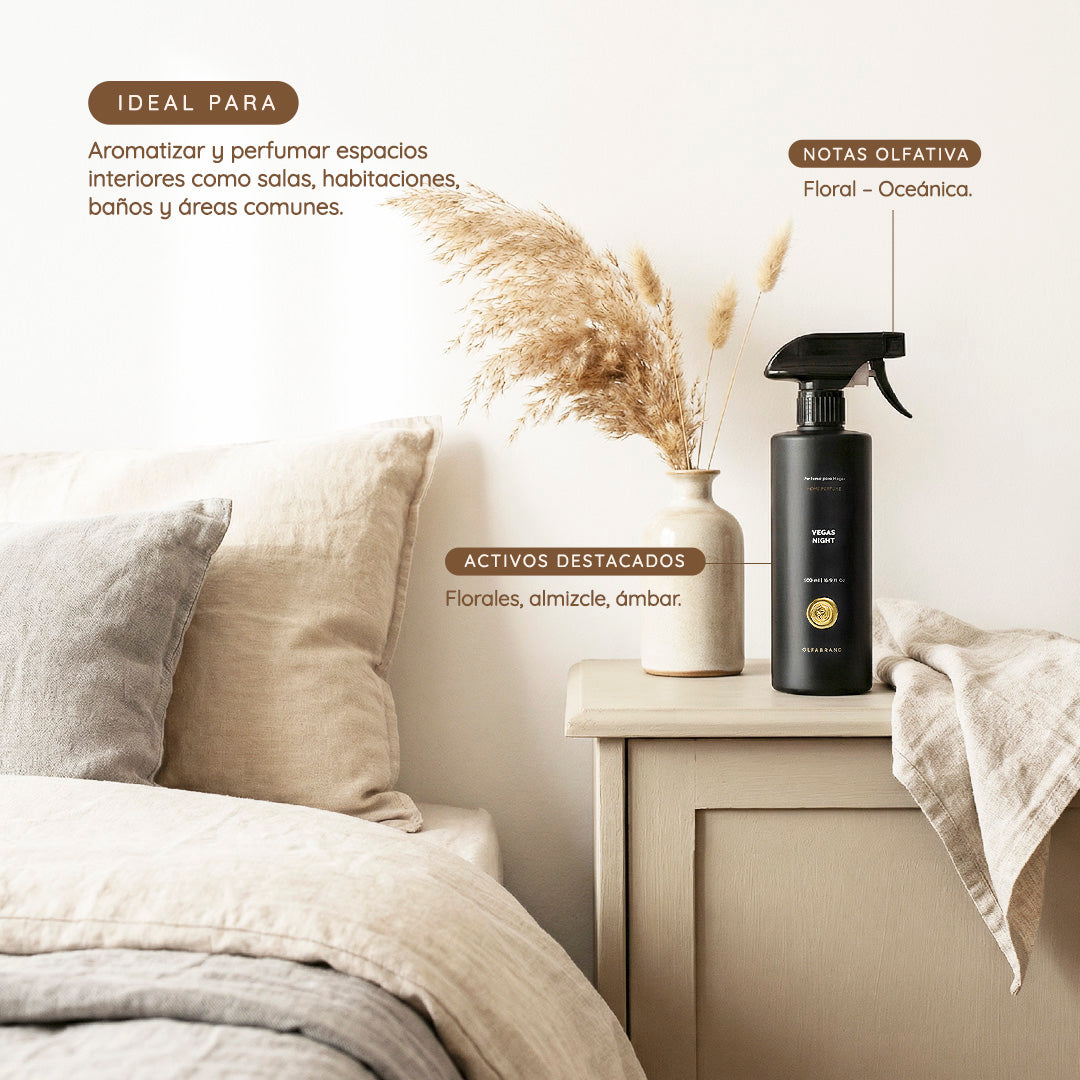 Déjate envolver por la elegancia moderna de Vegas, una fragancia que combina frescura, estilo y un toque de misterio. Su aroma floral–oceánico transforma tus espacios con una sensación de lujo y vitalidad, ideal para quienes disfrutan de ambientes refinados y llenos de carácter.